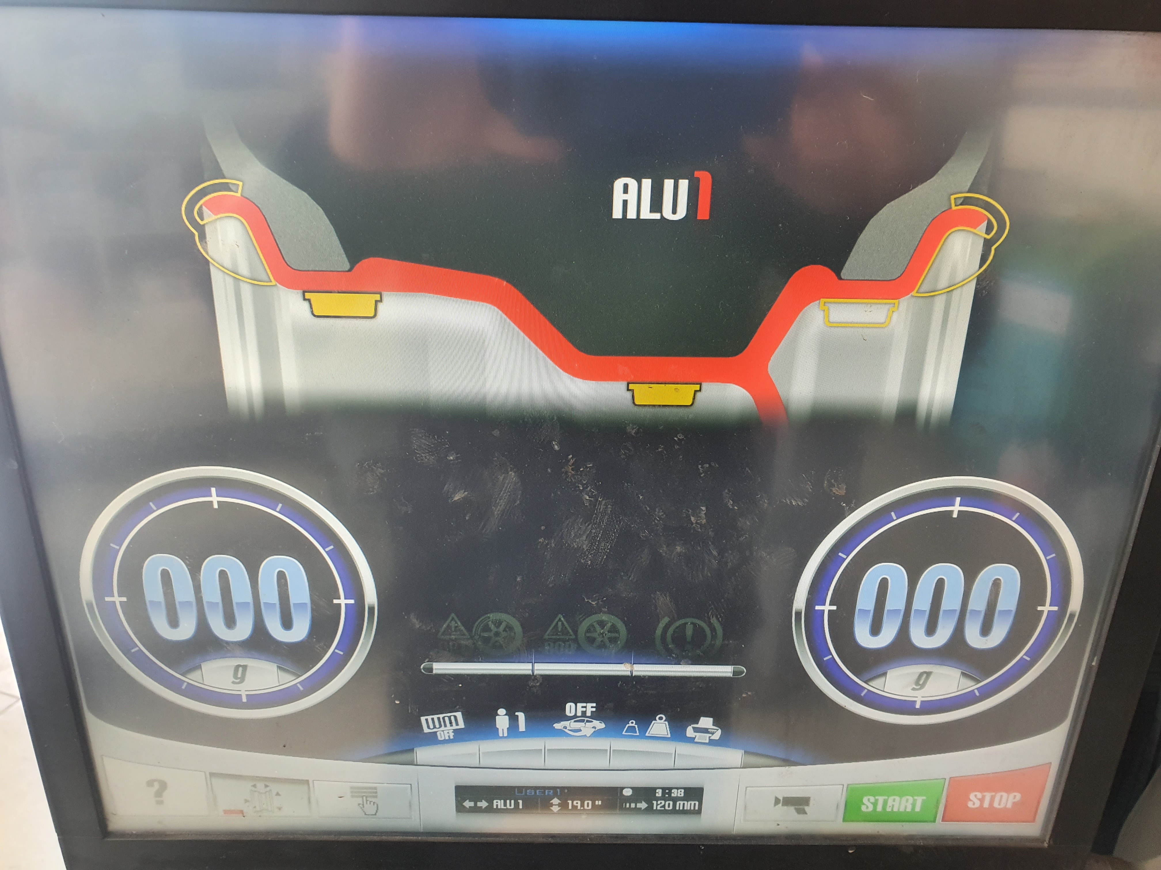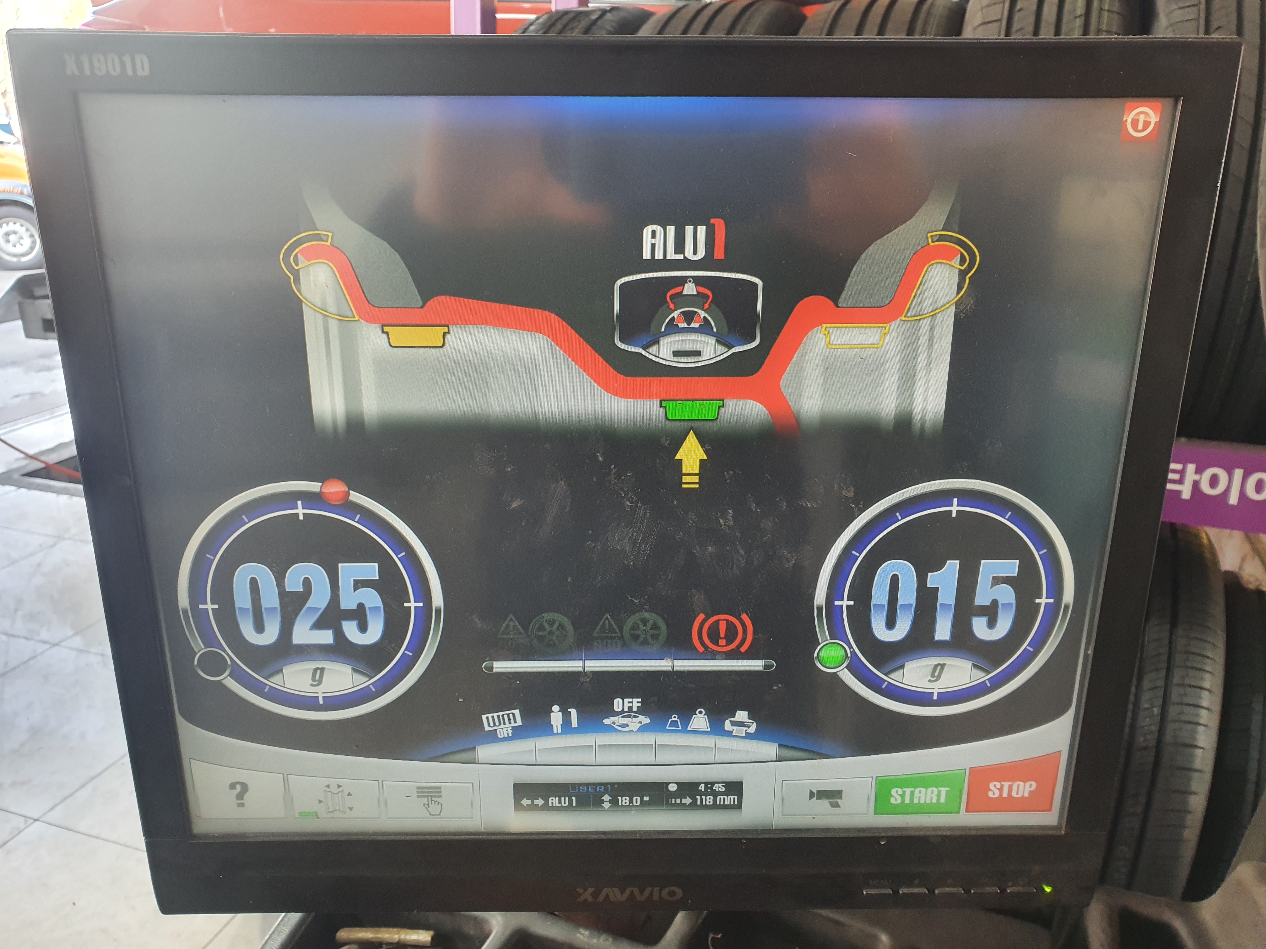 회전이 끝나면 휠과 타이어 무게 중심 측정후 좌우로 나누어 표시합니다.