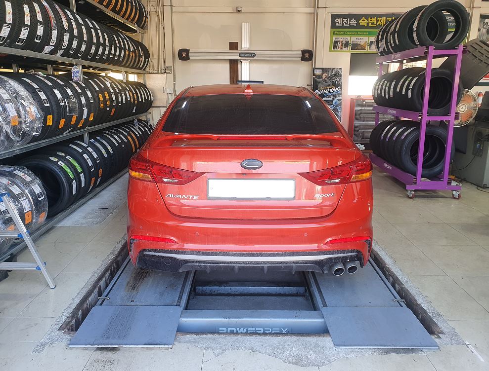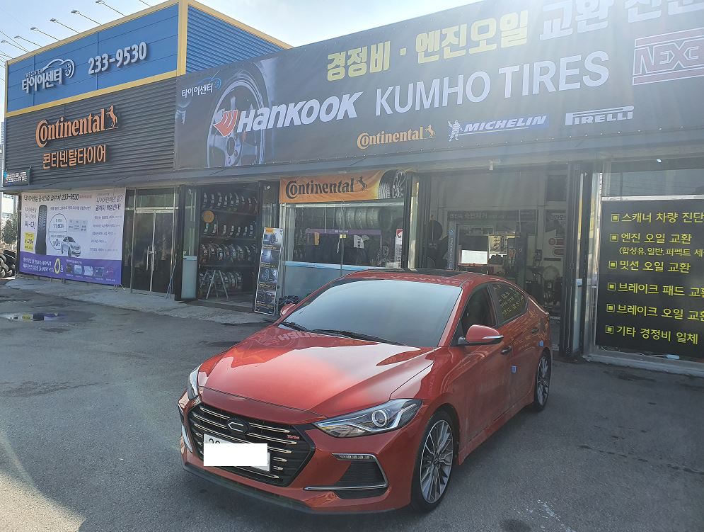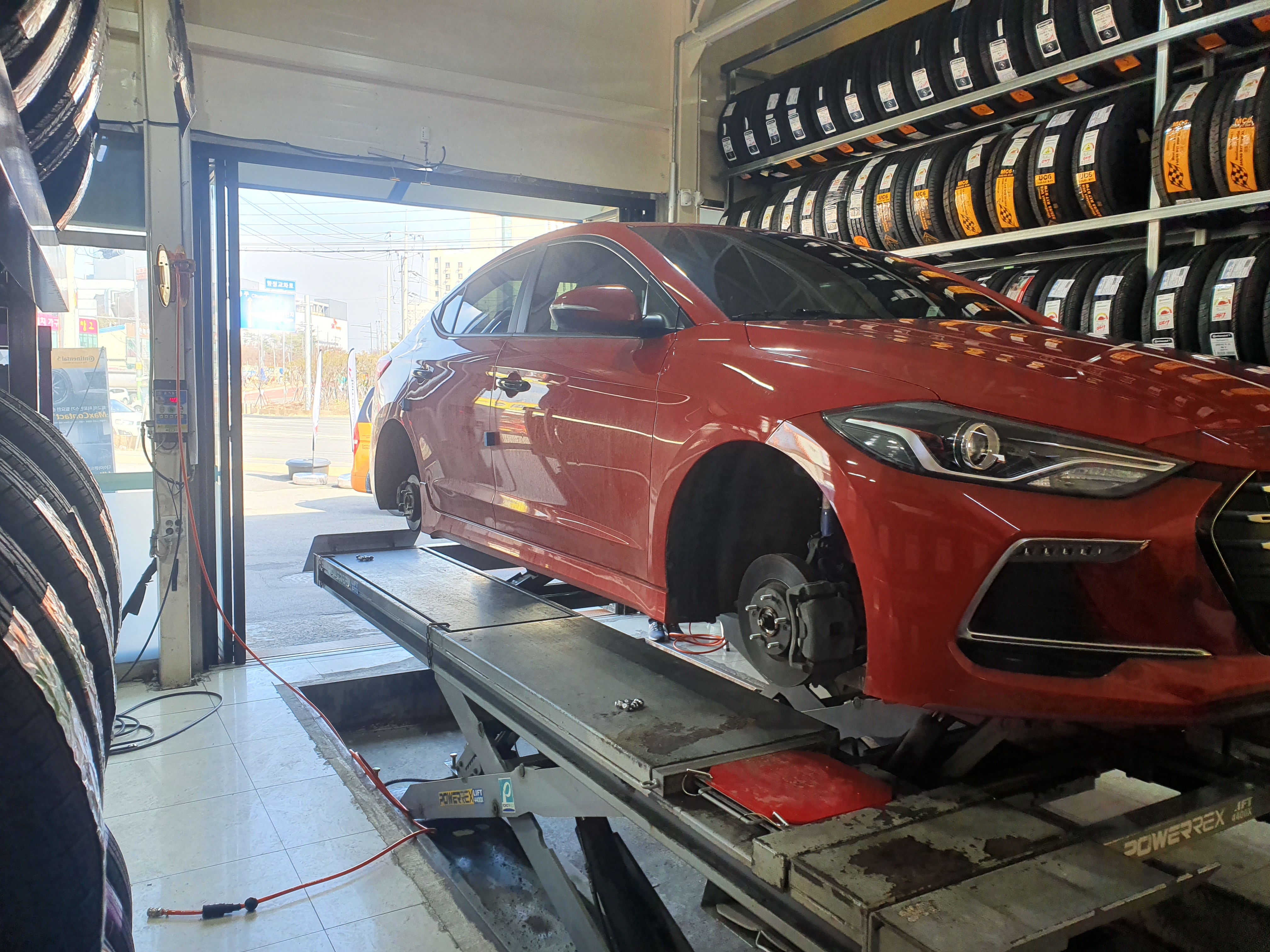 금일은 타이어 교체를 위해 아반떼 스포츠 차주분께서 방문하셨습니다.