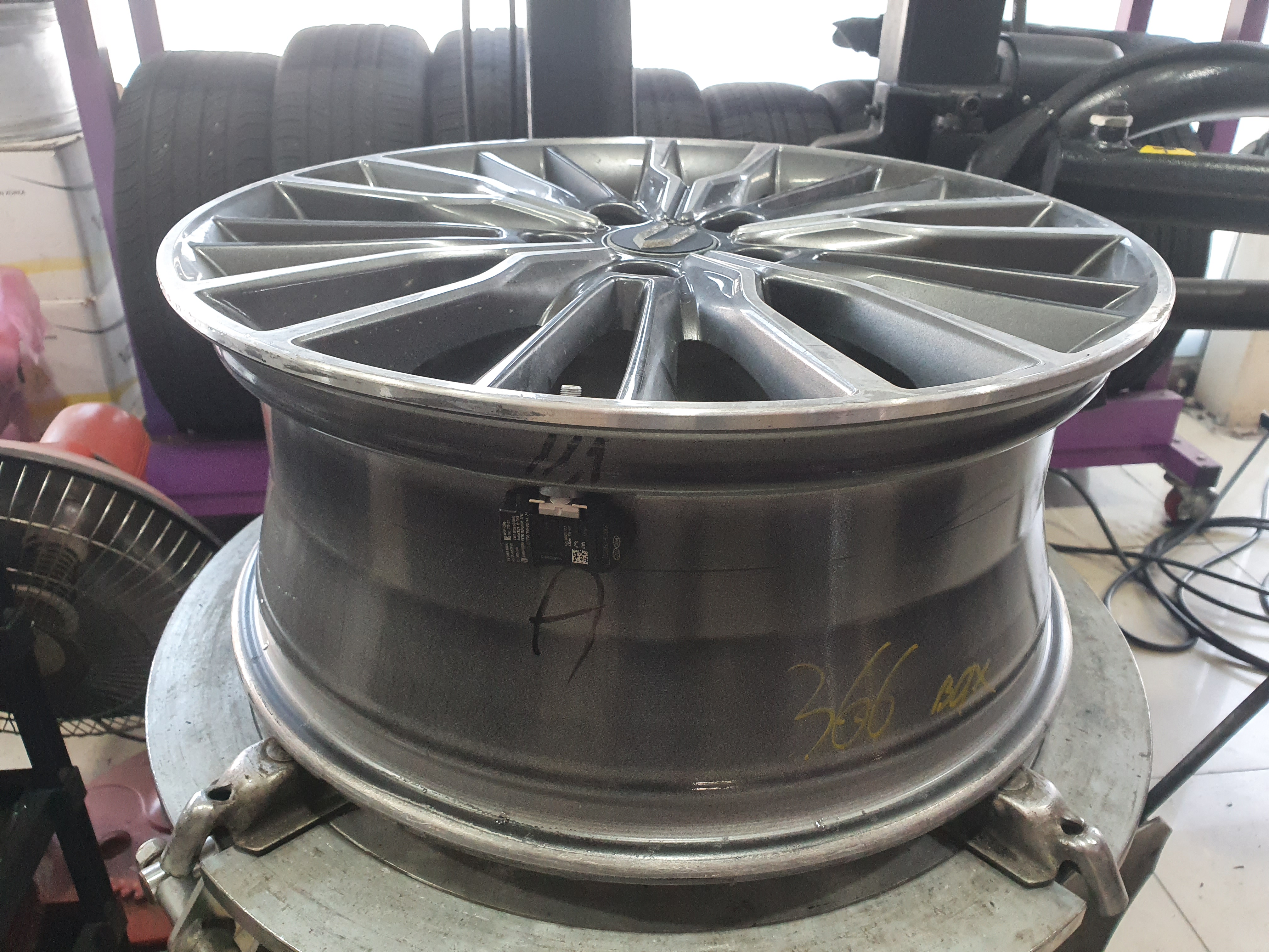 화면에 보이는 검은색 물체가 TPMS 즉 공기압 측정장치 입니다. 타이어에 바람이 빠지면 차량 계기판에 경고등을 표시해주는