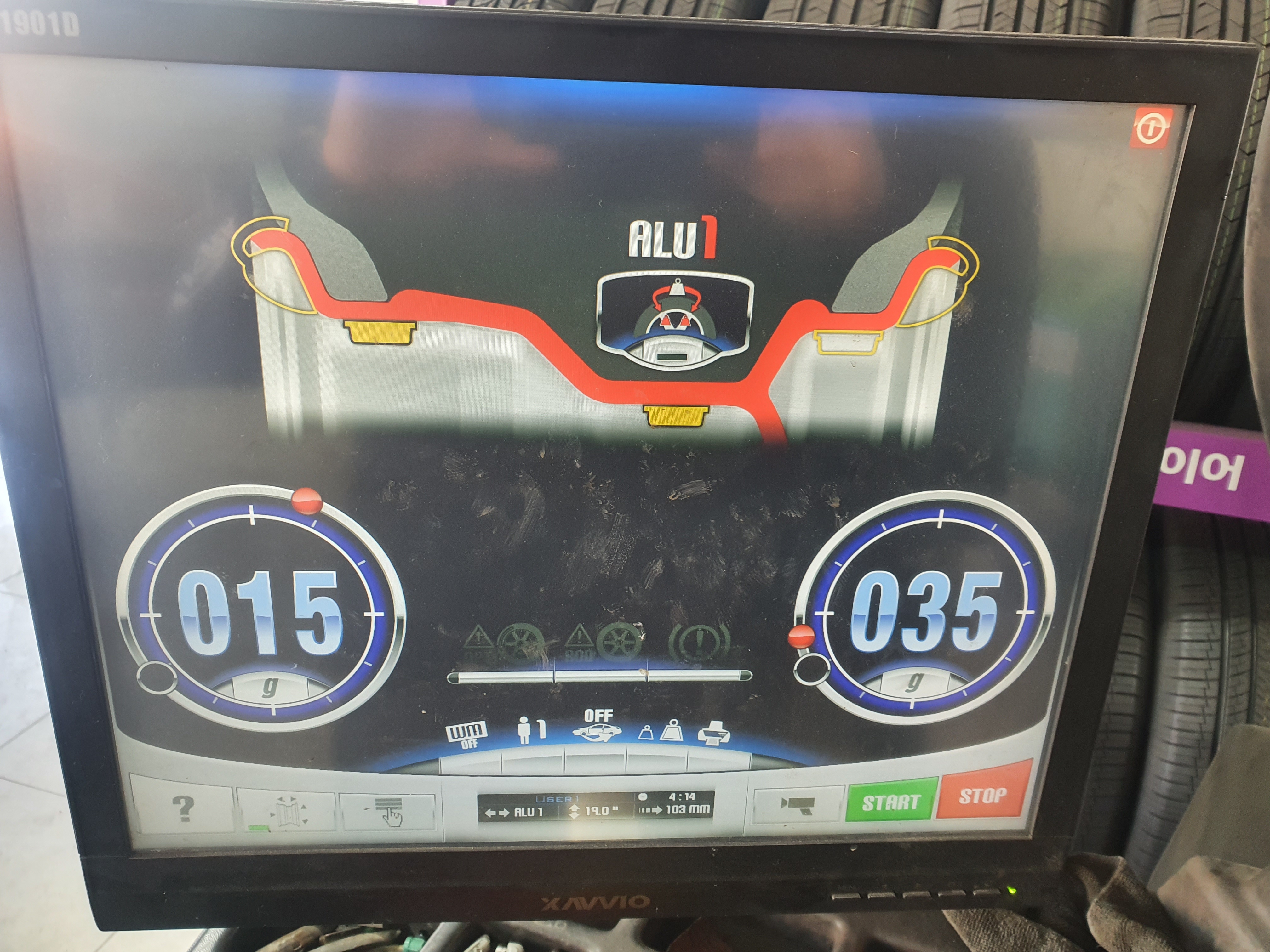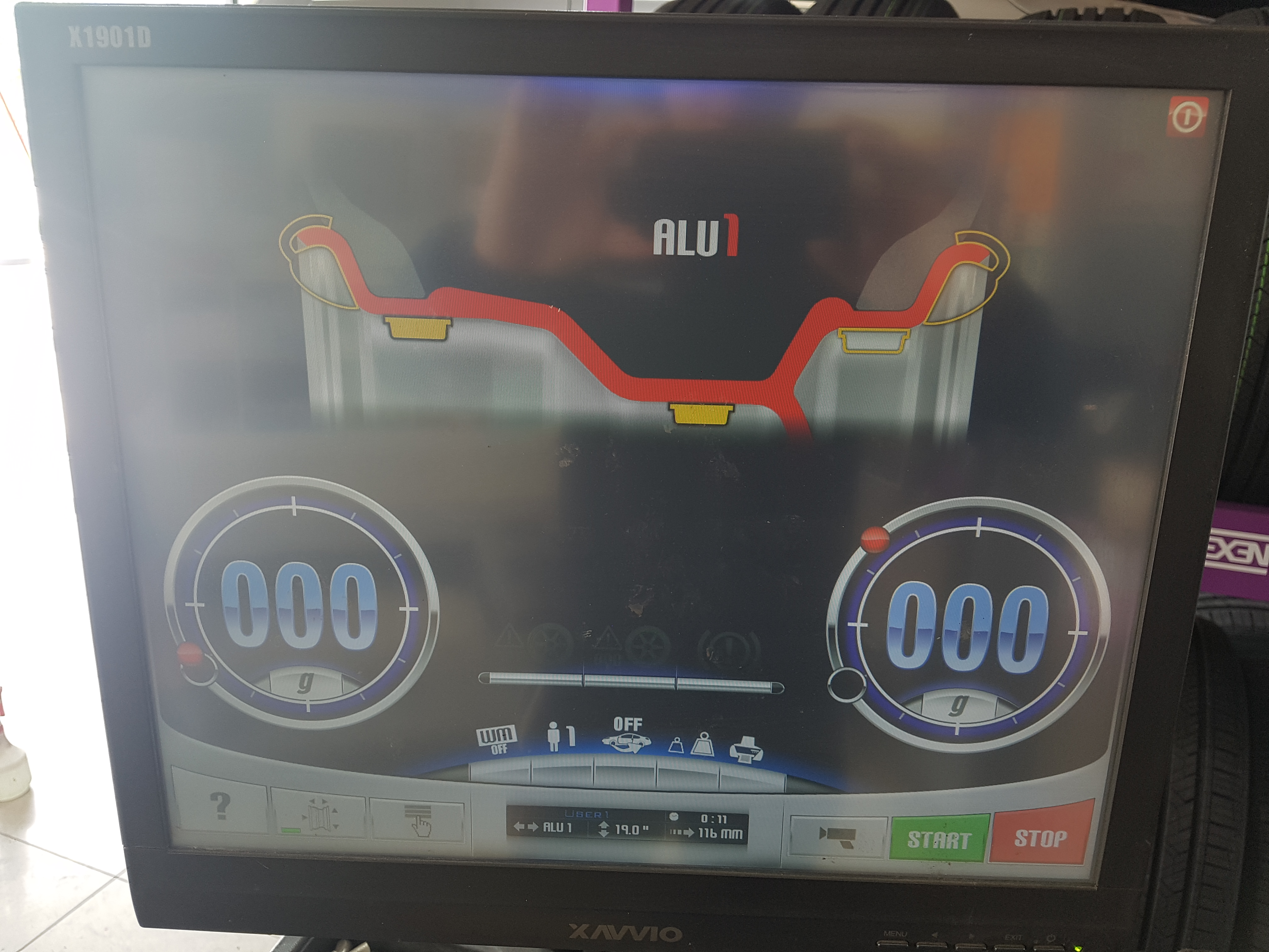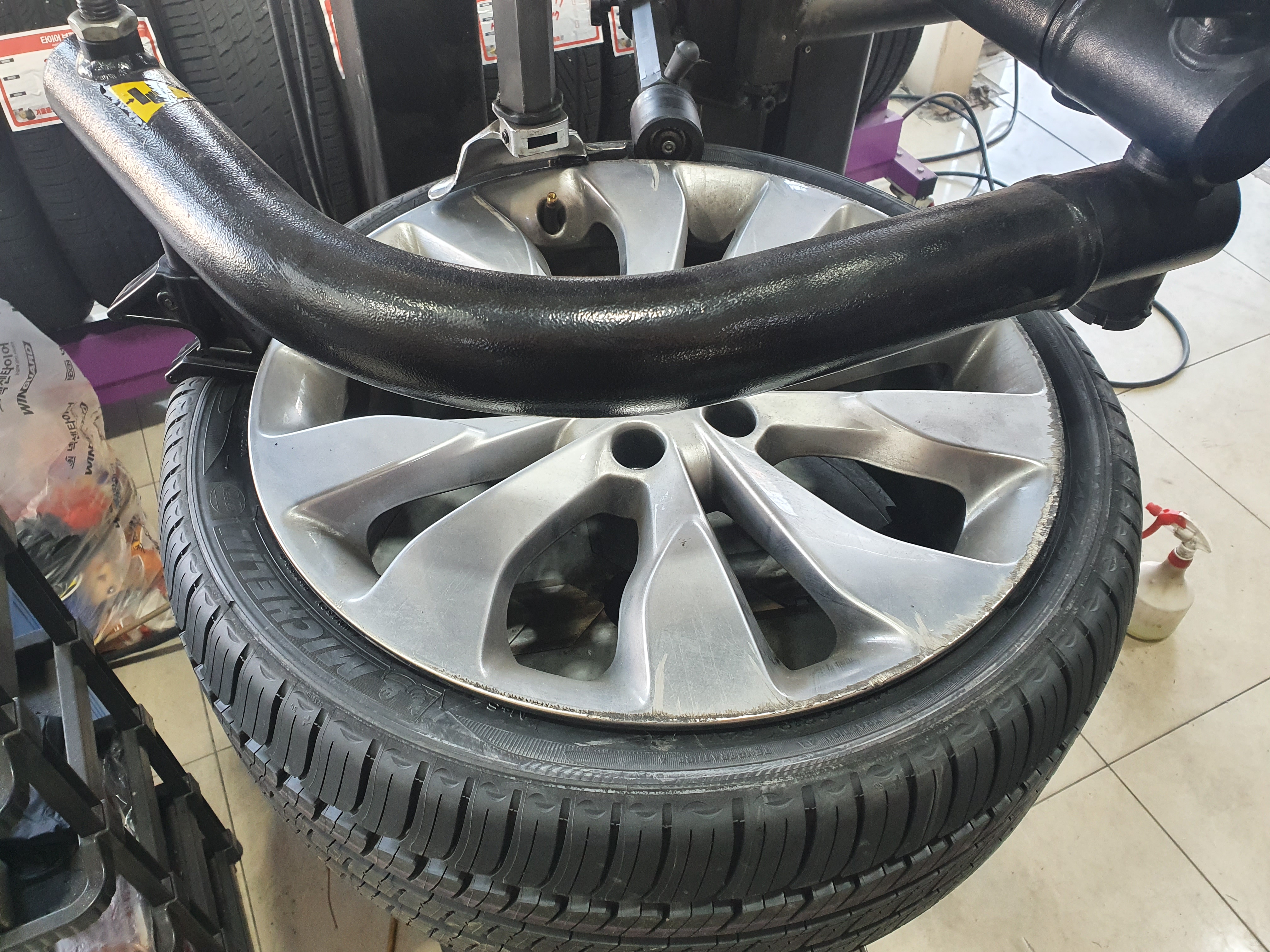 타이어 장착후 휠밸런스 측정을 위해 타이어 셋팅후 회전 합니다.